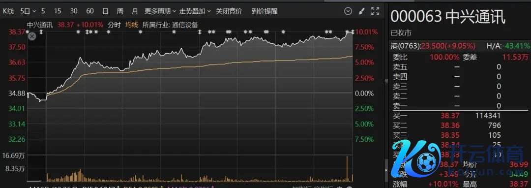 个股方面,中兴通信尾盘拉升涨停,成交额达145亿元。中兴通信港股也涨超10%,成交额超11亿港元。